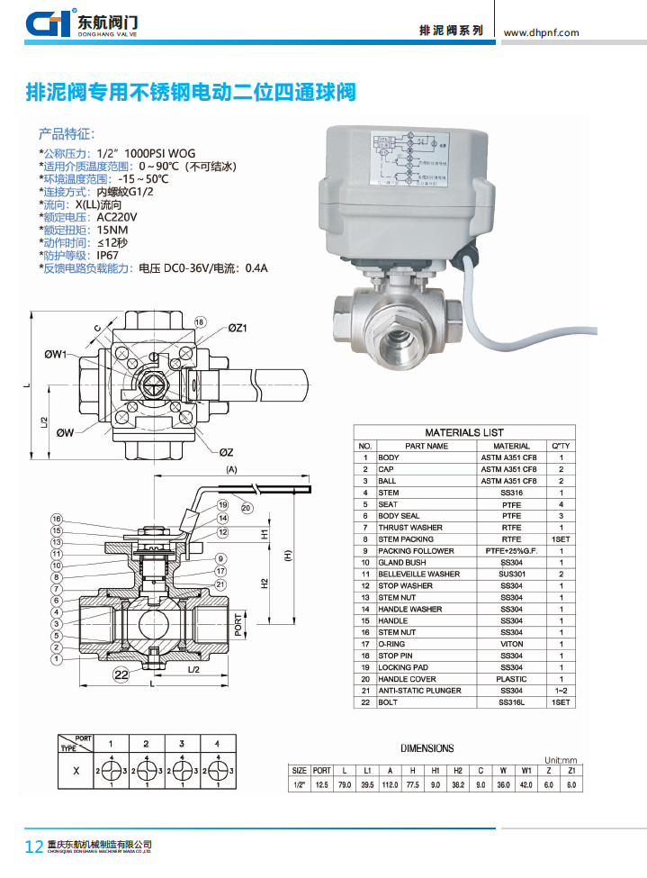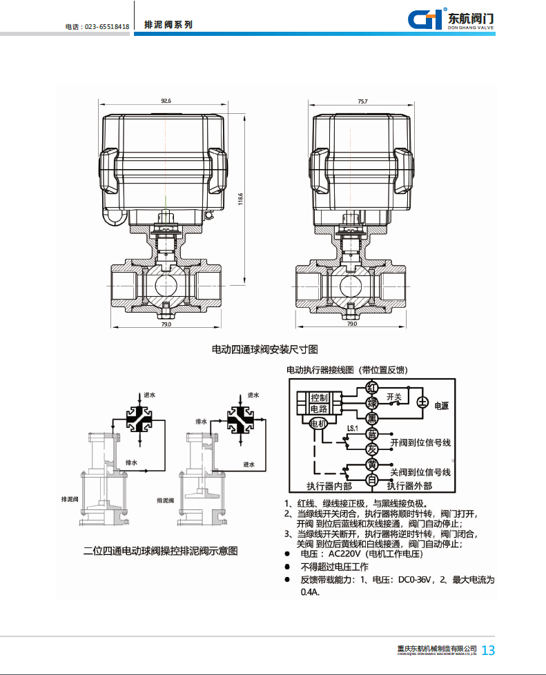 排泥閥用不銹鋼電動(dòng)動(dòng)換向閥 帶開(kāi)關(guān)到位信號(hào)反饋